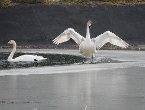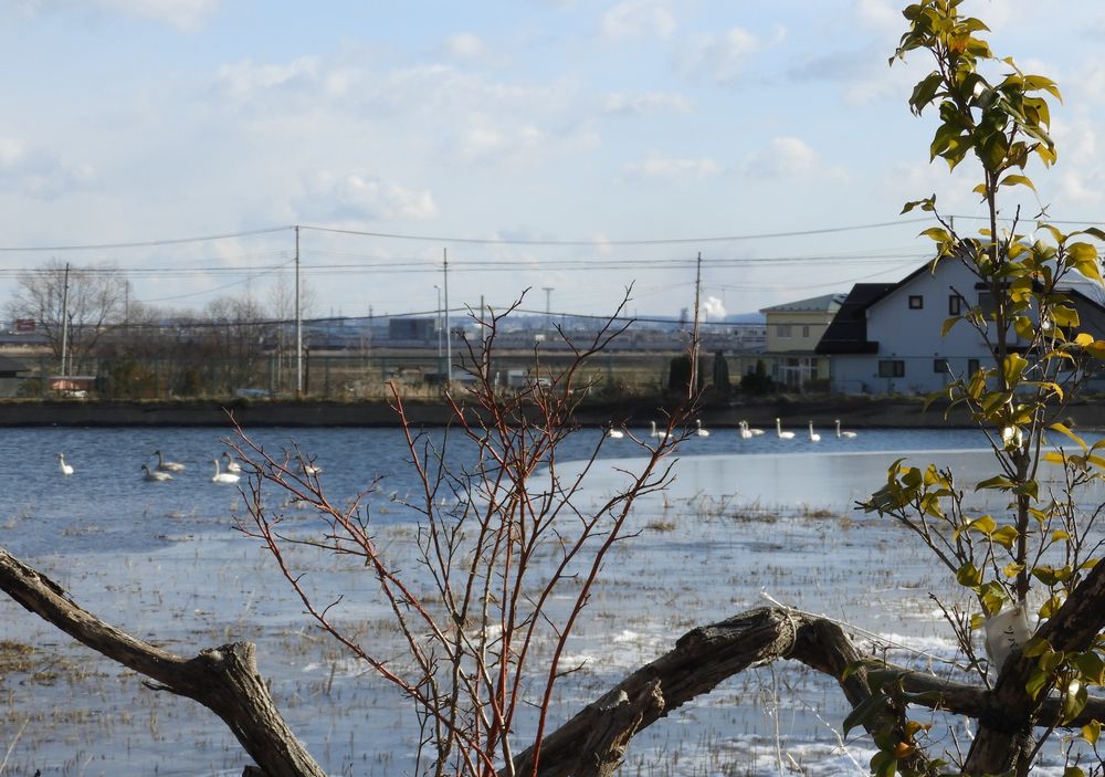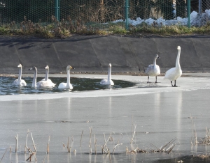 ふと、ほっとハウスの堤に目をやると、白鳥たちが羽を休めたり、