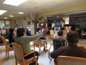 集団ストレッチ体操を行なっています。